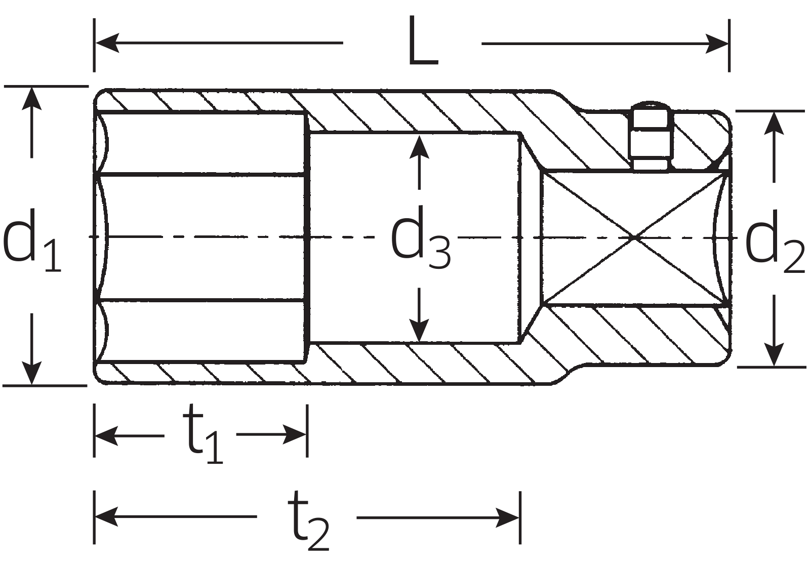 Nástrčná hlavice DIN 3124/ISO 2725-1, ASME B 107.5 M, prodlouená, AS-pohon a HPQ®-ocel vysoké kvality do rozměru klíče 36, chromovaná.