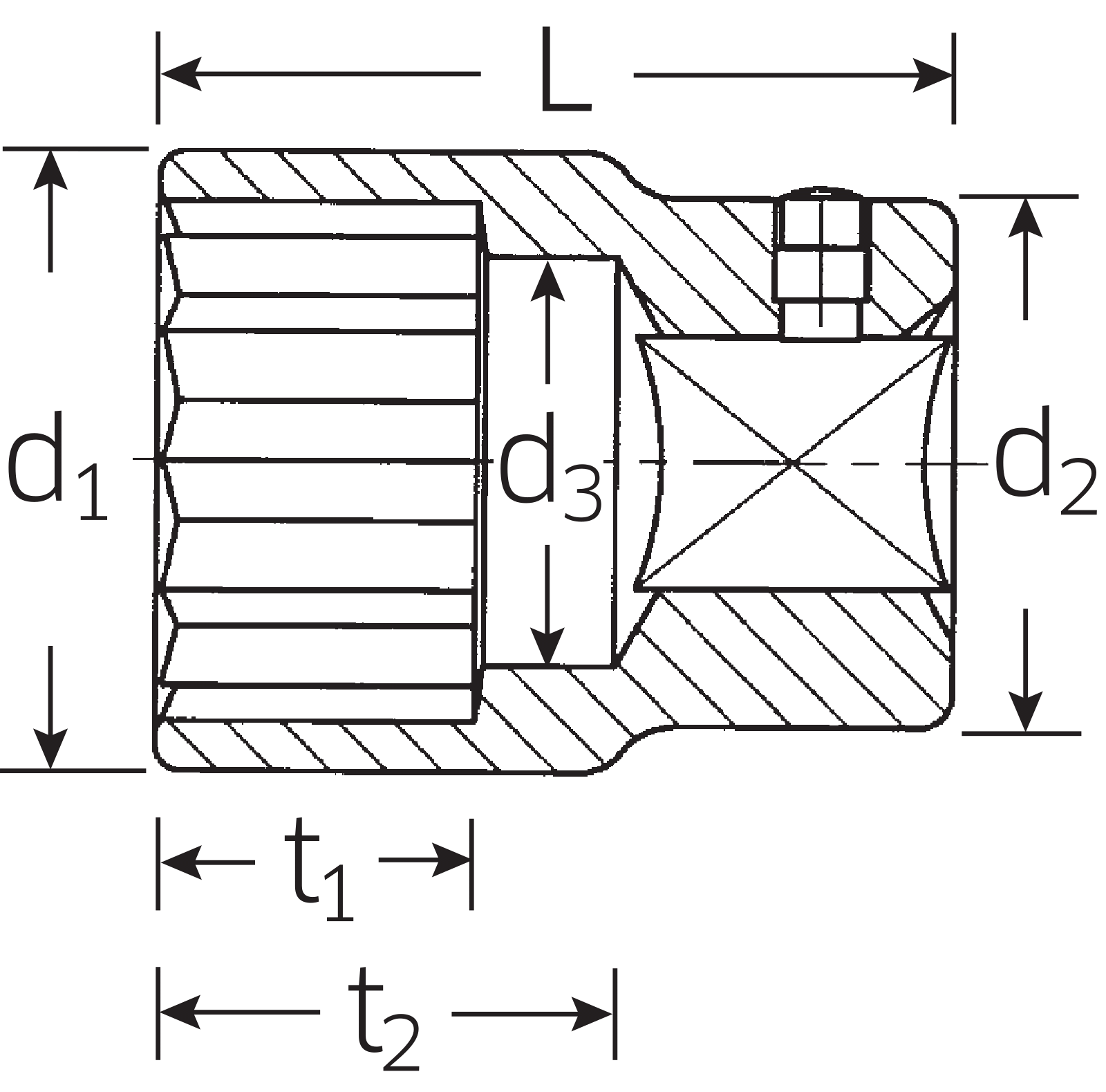 Nástrčná hlavice DIN 3124/ISO 2725-1, AS-pohon a HPQ®-ocel vysoké kvality do rozměru klíče 36, chromovaná.