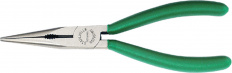 Půlkruhové kletě, cvakací (pro rádiovou a telefonní techniku) DIN ISO 5745, tvar A (rovné), půlkruhová plocha, dlouhé čelisti; s otvory pro hořáky k fixování matic a kolíkových roubů, uchytávací plochy s ozubením; precizní stříhání tvrdých a měkkých drátů, řezné hrany jsou indukčně kalené na cca. 60 HRC.