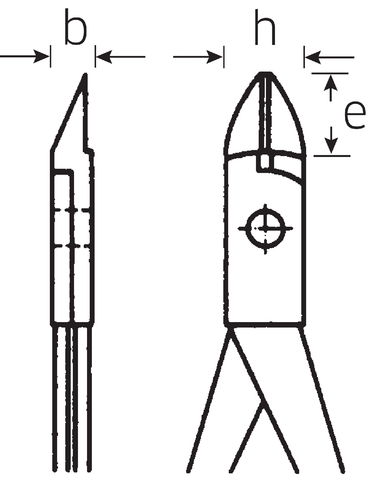 Příčné típací kletě pro jemnou mechaniku [N obzvlá vhodné pro práci na přístrojích s jemnou mechanikou a v elektronice, pro přesné stříhání tvrdých a měkkých drátů, s úhlem řezu cca 28°, s jemným střihem, Cu-Dráty o průměru 0,25 mm se odstřihují na konci čelistí, elektroocel vysoké kvality, střiné hrany jsou indukčně kaleny na cca. 60 HRC.