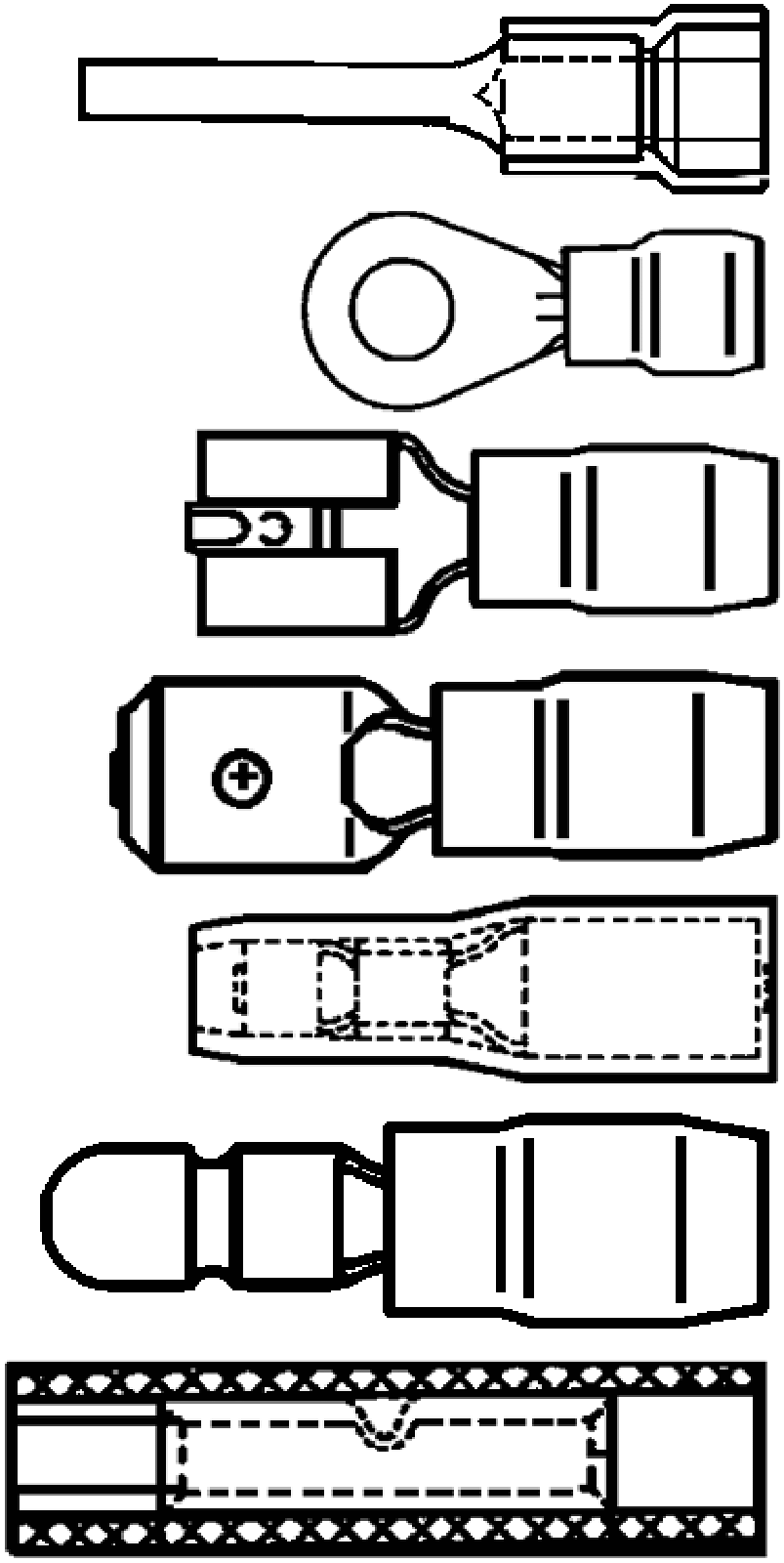 | 6638 | 0 | 220 | černěná | s plastovým pouzdrem | červený = 0,5-1 (AWG 20-18); modrý = 1,5-2,5 (AWG 16-14); lutý = 4-6 (AWG 12-10 | 477 |