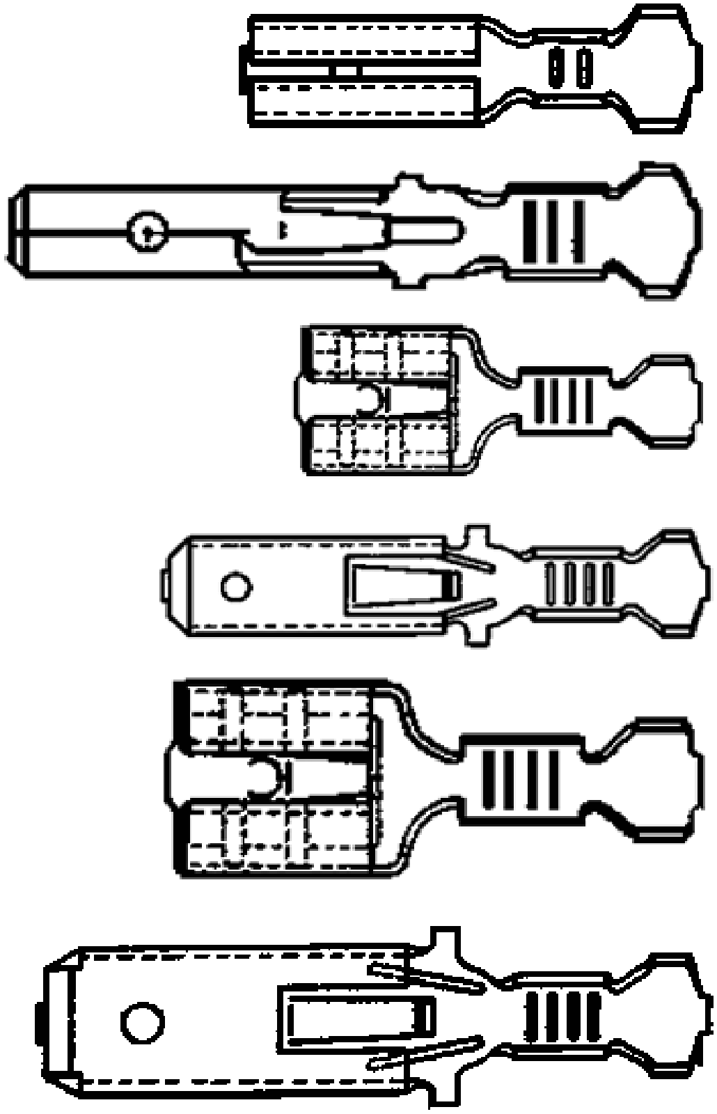 Dutinové kletě Na neizolované ploché zásuvky a plochá pouzdra pro DIN zástrčné ířky F2,8; F4,8; F6,3; F9,5 odblokovatelné uzavření lehké olvádání odizolovací a řezné zařízení viz č. 6966 tvar lemování: [2
