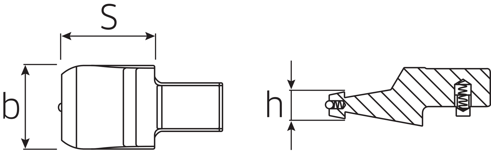 Nástrčný adaptér pouití při bočním zasouvaní nástrčného nářadí vybaveného vedením ve tvaru "vlatovčího ocasu" u momentových klíčů s vnitřním čtyřhranem 14 x 18 mm. Pozor! Pozměněné nastavené hodnoty momentových klíčů.