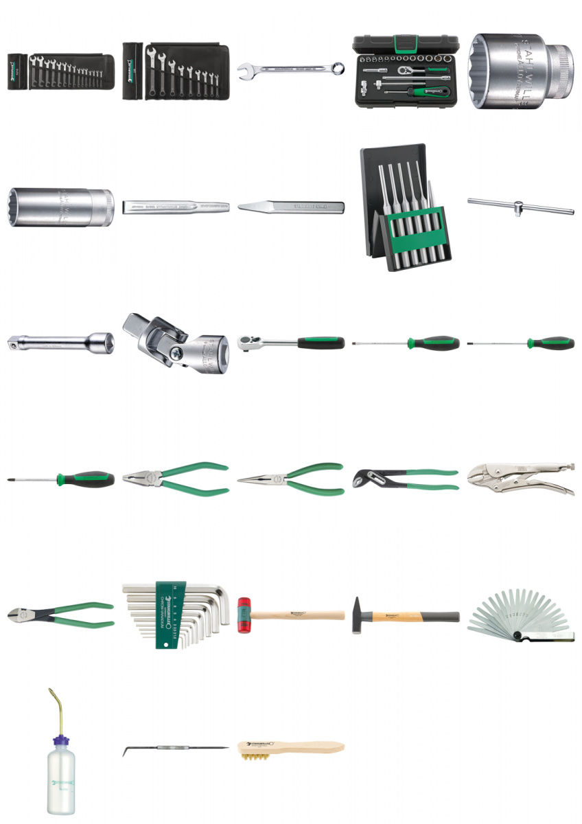 Velká dílenská souprava Obsahuje 106 kusů nářadí ------------------------------------------------------------------------------------------------------------------------------------------------------------------------- Č. 12/10 rozměr klíče 4; 4,5; 5; 5,5; 6; 7; 8; 9; 10; 11 mm Č. 13 rozměr klíče 6; 7; 8; 9; 10; 11; 12; 13; 15; 16; 17; 18; 19; 21; 22; 24; 27; 30; 32 mm Č. 40/13/6 1/4" [a No 40 rozměr klíče 3,5; 4; 4,5; 5; 5,5; 6; 7; 8; 9; 10; 11; 12; 13 mm; 400; 404; 405/2; 405/6; 407; 415 Č. 50 1/2" [a rozměr klíče 10; 12; 13; 14; 15; 16; 17; 18; 19; 21; 22; 24; 27; 30; 32 mm Č. 51 1/2" [a rozměr klíče 16 mm-5/8";20,8 mm-13/16" Č. 506 1/2" [D 300 mm Č. 509/5 1/2" [D [a 130 mm Č. 509/10 1/2" [D [a 255 mm Č. 510 1/2" [D [a 71 mm Č. 512 1/2" [D Č. 100/8 200 mm Č. 103 200 mm Č. 105-8/6 K No 105/120 x 10 mm; No 108/150 x 2,5; 150 x 3; 150 x 4; 150 x 5; 150 x 6 mm Č. 4620 velikost 1 (0,6 x 3,5 x 75 mm)velikost 2 (0,8 x 4,0 x 100 mm)velikost 3 (1,0 x 5,5 x 125 mm)velikost 4 (1,2 x 6,5 x 150 mm)velikost 5 (1,6 x 8,0 x 175 mm) Č. 4628 velikost 1 (0,4 x 2,5 x 60 mm) Č. 4630 velikost 1; Gr. 2 Č. 65 01 6 180 Č. 65 29 6 200 Č. 65 51 6 240 Č. 65 64 2 250 Č. 66 02 6 160 Č. 10760CV/9 velikost 1,5; 2; 2,5; 3; 4; 5; 6; 8; 10 mm Č. 10955 35 mm [O Č. 10960 500 g Č. 11095/20 0,05-1 mm Č. 12251 Č. 12321 Č. 12375 -------------------------------------------------------------------------------------------------------------------------------------------------------------------------