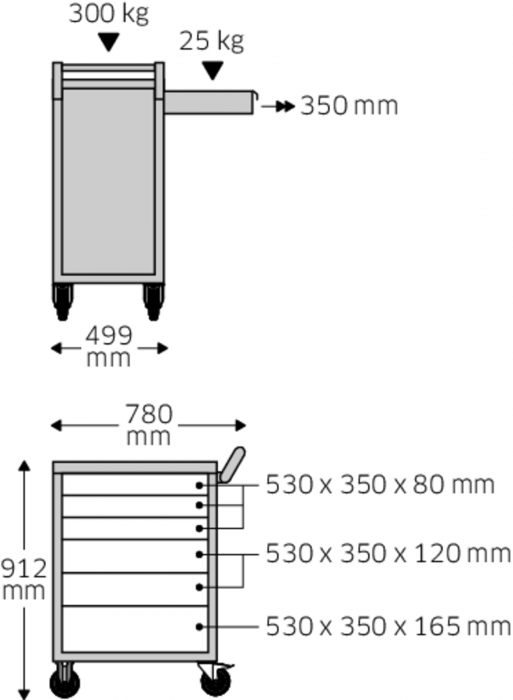 VOZÍK NA NÁŘADÍ, ANTRACITOVĚ ČERNÝ 90/6A