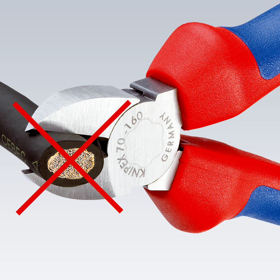Ke střihání měděných a hliníkových kabelů, jednožilových a vícežilových. Hladké a čisté břity bez deformací. Nevhodné pro ocelový drát a natvrdo tažené měděné vodiče. Kalené břity s precizním výbrusem. Snadné ustřižení při obsluze jednou rukou. S ochranou proti sevření. Seřizovatelný šroubovaný čep kloubu, samosvorný. Kleště se závěsným okem pro upevnění pojistného lanka. karton nebo blistr pro samoobslužný odběr.