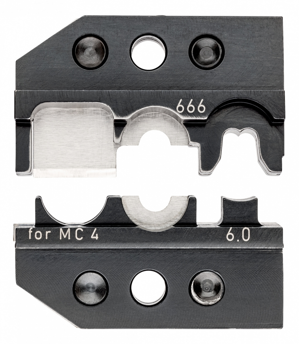 Lisovací profil pro stříhání, odizolování a lisování konektorů MC4 (Multi-Contact) solárních kabelů.