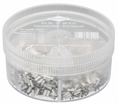 Rozsah dodávky: 500 x KNIPEX Koncové dutinky, neizolované 6 mm (500 x 0,5 mm² / AWG 20), 500 x KNIPEX Koncové dutinky, neizolované 6 mm (500 x 0,75 mm² / AWG 18), 400 x KNIPEX Koncové dutinky, neizolované 6 mm (400 x 1 mm² / AWG 17), 300 x KNIPEX Koncové dutinky, neizolované 7 mm (300 x 1,5 mm² / AWG 15), 200 x KNIPEX Koncové dutinky, neizolované 7 mm (200 x 2,5 mm² / AWG 13),