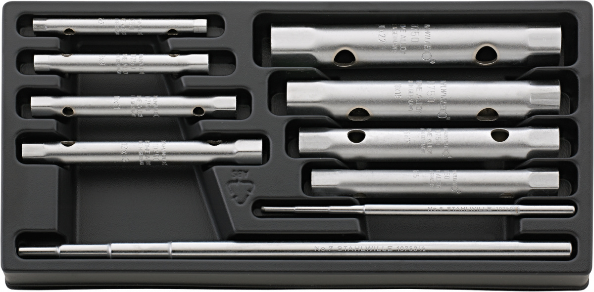 ES 10750/10, 6x7-20x22 mm 175 x 350 x 30 mm, 10-dílná ----------------------------------------------------------------------------------------------------------------- Č. 10750 rozměr klíče 6 x 7; 8 x 9; 10 x 11; 12 x 13; 14 x 15; 16 x 17; 18 x 19; 20 x 22 mm Č. 10750 1/2 velikost 6; 7 -----------------------------------------------------------------------------------------------------------------