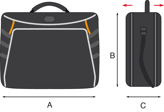 • Vnější organizovaný vak pro dokumenty a doplňky
