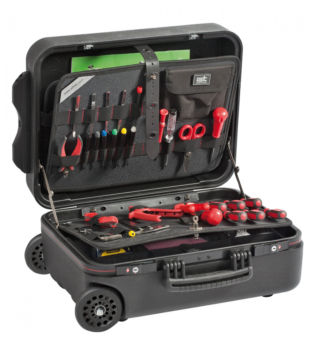 • Vysokokapacitní kufr s vystuženými rohy, ideální pro cestování letadlem a převážení jak nářadí, tak i náhradních dílů a ostatních komponentů.