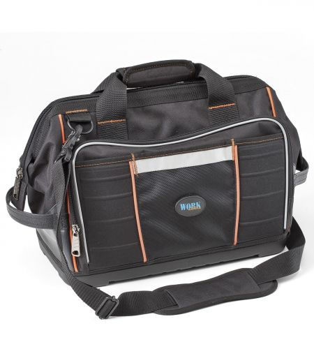 Taška na nářadí s polstrovanými kapsami a nastavitelným ramenním popruhem.