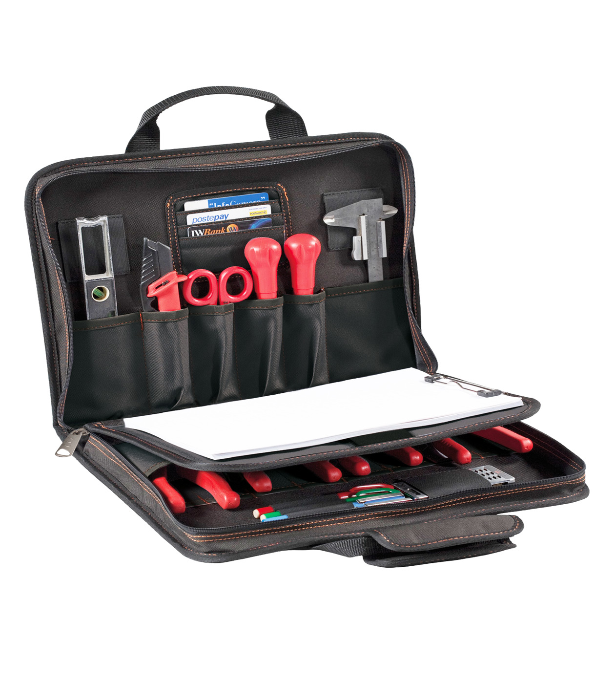 Brašna na nářadí a dokumenty s vnitřním vyjímatelným držákem na poznámkový blok.