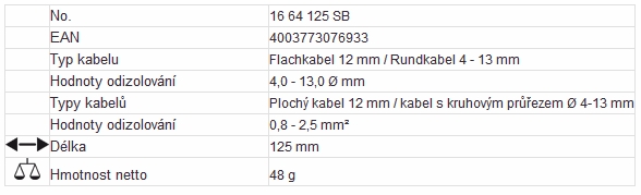 • s průměr 4,0 až 13,0 mm (např. kabel NYM 3 x 1,5 mm2 až 5 x 2,5 mm2)