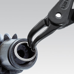 • Pro montáž pojistných kroužků v průmyslové sériové výrobě v souladu s normami. Právě výrobci citlivých konstrukčních součástí, které jsou důležité pro bezpečnost (jako např. brzdy nebo převodovky), kladou největší důraz na dodržování norem DIN 471 a 472. Zde je vyžadována montáž kroužků pomocí kleští s ochranou proti roztažnosti nebo s kuželem. Kleště KNIPEX na pojistné kroužky s ochranou proti roztažnosti splňují tento požadavek a kromě toho nabízejí vyšší životnost.