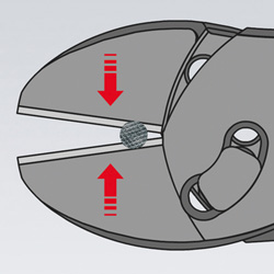 • Funkce opakovaného střihu. Dokonce i dráty o tloušťce 4 mm štípe KNIPEX TwinForce s 2-3násobným opakovaným střihem bez nutnosti vynaložení velké síly. Běžné silové kleště na štípání drátu takové průměry vůbec neuštípnou nebo je uštípnou pouze s vynaložením značné síly.
