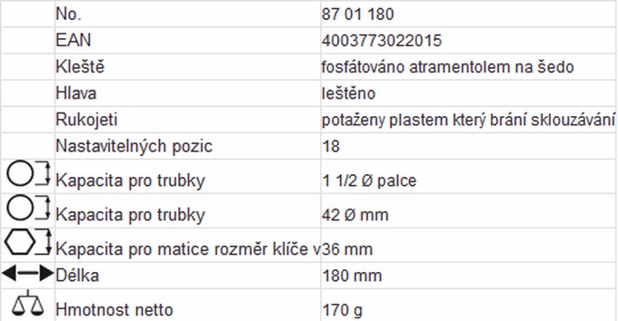 KLEŠTĚ HITECH INSTALATÉRSKÉ 180 mm "COBRA"