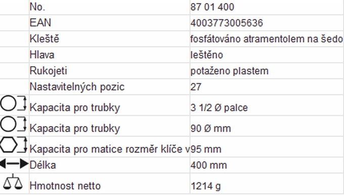 • větší šířka úchopu, ale mnohem nižší hmotnost než srovnatelné trubkové kleště