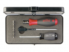 Splňuje vaše požadavky: Variabilně nastavitelný moment pokrývá velký rozsah možností použití.Zvýší vaši efektivnost: Správný točivý moment chrání před poškozením materiálu a dodatečnými pracemi.Sníží vaše náklady: Správný točivý moment vás chrání před plněním nároků vyplývajících ze záruky.Zvýší vaši produktivitu: Nejvyšší bezpečnost procesu díky integrované funkci počítání ClickControl a kalibračnímu alarmu.Použití: Ke kontrolovanému šroubování u zadaného momentu.Držák nástavců: Univerzální držák nástavců Torque, výměnné dříky pro uchycení nástavců tvar C 6,3 a E 6,3 (1/4") (součást dodávky).Extra: Velký digitální displej pro jednoduché, plynulé nastavení hodnoty momentu.Extra: Jednoduše přepínatelné jednotky - Nm ↔ in.lb/cNm ↔ in.oz.Extra: Click Control - Integrované počítadlo eviduje každé použití. Kalibrační alarm po každém 5000 použití (normalizovaná směrná hodnota/vynulovatelná).Precision: ±6%, lze vztáhnout na národní normálu.Handle: Moment komfortně nastavitelný pomocí otočného knoflíku integrovaného přímo v rukojeti.Handle: Ergonomická kombinovaná rukojeť plast-kov z vysoce jakostních a robustních materiálů.Handle: Velikost držadla optimálně přizpůsobená rozsahu točivého momentu.Handle: Zřetelně slyšitelný a znatelný signál kliknutí při dosažení nastavené hodnoty momentu.Handle: Kufřík s 97dílnou soupravou nářadí pro profesionální elektrikáře.Při výměně vyjímatelných břitových destiček je podstatné kontrolované šroubování se zadaným momentem, aby nedošlo k poškození. Nápravu poskytuje momentový šroubovák iTorque®, který lze popsat slovy inteligentní, inovativní a individuální. Krytkou na konci rukojeti iTorque® může být jednoduše a plynule nastavena požadovaná hodnota v Nm. Navíc je možné přestavení jednotky momentu z Nm na in.lbs. Pomocí velkého digitálního displeje s numerickým zobrazením lze rychle a jednoduše odečítat nastavenou hodnotu v Nm. S přesností vypnutí +/-6 % momentový nástroj splňuje požadavky DIN EN ISO 6789. Integrované počitadlo dokumentuje počet uvolnění, což je zvlášť důležité pro sledování zkušebního prostředku. Funkce alarmu uživateli včas připomene specifikovaný kalibrační cyklus, který je z výroby nastaven na 5 000 aplikací, a v případě potřeby může být individuálně přizpůsoben. Ergonomicky tvarovaná rukojeť s měkkými částmi dále umožňuje optimální manipulaci s momentovým šroubovákem. V sadě je obsažený jeden univerzální držák nástavců pro upnutí nástavců 1/4". iTorque® je navíc kompatibilní s výměnnými dříky Wiha Torque 4 mm (série 2859).DIN EN ISO 6789.