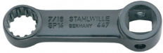 Očkový klíč otevřený -CROW-RING nahrazuje č. 440 MJ Pozor! Pro úpravu nastavených hodnot momentového klíče, EN 4108, pro přímé, valcové a evolventní roubové spoje potrubí; z oceli kvality HPQ®, chromované provedení.