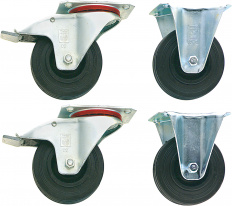 Sada koleček skládá se ze 2 pevných a 2 otočných koleček o průměru 125 mm, z těch je 2 vybavenou fixační brzdou.