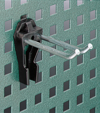 Dvojitý hák K perforované tabuli č. 8002, k pracovnímu stolu č. 92KM G a k dílenskému vozíku č. 95, 95VA, 98VA.