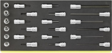Popis: •Sestavy nářadí pro vozík na nářadí č. 13217 •Číslo 13: velikosti 6; 7; 8; 10; 11; 12; 13; 14; 15; 16 ; 17; 19; 22; 24 mm •Číslo 17: velikosti 8; 10; 13; 17; 19 mm •Číslo 40: 1/4" vnitřní čtyřhran, velikosti 5; 5.5; 6; 7; 8; 9; 10; 11; 12; 13 mm •Číslo 400: 1/4" vnější čtyřhran, 150 mm •Číslo 405/2: 1/4" vnější čtyřhran, vnitřní čtyřhran 54 mm •Číslo 405/6: 1/4" vnější čtyřhran, vnitřní čtyřhran 150 mm •Číslo 407: 1/4" vnější čtyřhran, vnitřní čtyřhran 38 mm •Číslo 412: 1/4" vnitřní šestihran, vnitřní čtyřhran •Číslo 415: 1/4" vnější čtyřhran •Číslo 52: 1/2" vnitřní čtyřhran, velikosti 10; 11; 12; 13; 14; 15; 16; 17 ; 18; 19; 20; 21; 22; 24; 27; 30; 32 mm •Číslo 509/3: 1/2" vnější čtyřhran, vnitřní čtyřhran 75 mm •Číslo 509/5: 1/2" vnější čtyřhran, vnitřní čtyřhran 130 mm •Číslo 509/10: 1/2" vnější čtyřhran, vnitřní čtyřhran 255 mm •Číslo 510: 1/2" vnější čtyřhran, vnitřní čtyřhran 71 mm •Číslo 512: 1/2" vnější čtyřhran •Číslo 4620: velikost 1 (0.6 x 3.5 x 75 mm) velikost 2: (0.8 x 4.0 x 100 mm ) velikost 3: (1.0 x 5.5 x 125 mm) velikost 4: (1.2 x 6.5 x 150 mm) velikost 5: (1.6 x 8.0 x 175 mm ) •Číslo 4628: velikost 1 (0.4 x 2.5 x 60 mm ) •Číslo 4630: velikosti 1; 2; 3 •Číslo 4734: velikost 2 •Číslo 10767/9: velikosti 1.5; 2; 2.5; 3; 4; 5; 6; 8; 10 m m •Číslo 10771/8: velikosti T9; T10; T15; T20; T25; T27; T30; T40 •Číslo 65 01 5 180 •Číslo 65 29 5 200 •Číslo 65 51 6 240 •Číslo 66 02 5 160