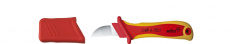 Usnadní vám práci.: Vedení kabelu zajišťuje bezpečné a snadné odpláštění.Usnadní vám práci.: Umožňuje odpláštění na obtížně přístupných místech např. v instalačních krabicích.Zvýší vaši efektivnost: 4 v 1: kruhový odplášťovací nástroj, podélný odplášťovací nástroj, hákovitý nůž a odizolovací stanice v jediném nástroji.Použití: Rovné odpláštění a odizolování kruhových kabelů a kabelů pro vlhké prostory s průměrem 8–13 mm (např. NYM 3× 1,5 mm² až 5× 2,5 mm²), i na obtížně přístupných místech, např. ve stropech a stěnách, v odbočných a rozdělovacích krabicích, skříňových rozvaděčích atd.Při práci na skříňovém rozvaděči se ve stísněném prostoru provádí velký počet pracovních kroků. Multifunkční odizolovací nástroj Wiha pokrývá hned čtyři důležité funkce. Patří mezi ně odplášťování kruhových kabelů s průměrem 8–13 mm (3× 1,5 mm² až 5× 2,5 mm²) kruhovým a podélným řezem. Optimalizované vedení kabelu zajišťuje bezpečné, přesné a pohodlné odpláštění bez nutnosti předem nastavovat hloubku řezu. Rovné odpláštění není díky pohodlné a protiskluzové rukojeti nejmenší problém ani na obtížně přístupných místech. Víceúčelový nástroj kromě toho zaručuje čisté odizolování flexibilních i masivních vodičů v rozsahu 0,5–6,0 mm². Integrovaný hákový dřík lze bezpečně aretovat a na ochranu úplně zapustit do tělesa. Za účelem bezpečného a prostorově nenáročného uskladnění je možné odizolovací nástroj zajistit v zavřeném stavu.