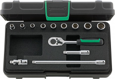 Čtyřhran 1/2" s kulovou aretací, přepínatelný, DIN 3122/ISO 3315.