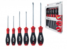 Kulaté čepele. Čepel Kvalitní chrom-vanad-molybdenová ocel, průběžně kalená, matně pochromovaná. Hrot čepele Wiha ChromTop(R) zaručuje maximální rozměrovou stálost. Rukojeť Ergonomická vícekomponentní rukojeť Wiha SoftFinish s ochranou proti odkutálení. Použití Zvlášť vhodné pro použití v suchém prostředí. 1ks šroubovák PH1x191 mm 1ks šroubovák PH2x218 mm 1ks šroubovák PH3x274 mm 1ks šroubovák PZ1x191 mm 1ks šroubovák PZ2x218 mm 1ks šroubovák PZ3x274 mm