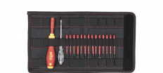 Použití: Šroubování v blízkosti dílů pod napětím do 1000 VAC.Při každodenní práci na dílech pod napětím se elektrikáři často setkávají s různými profily šroubů. Rukojeť šroubováku SoftFinish s výměnnými nástavci slimBit je vhodná pro nejrůznější způsoby použití, aniž s sebou musíte nosit pro každý profil samostatný šroubovák. Šroubovák s ergonomickým tvarem rukojeti s ochranou proti odvalení padne dobře do ruky a při práci šetří klouby a šlachy. Díky Wiha slimTechnology mohou nástavce slimBit s dříkem tenčím až o 33 % bez problémů dosáhnout i k hluboko uloženým šroubům a pružinám. Izolovaná rukojeť šroubováku a nástavce slimBit byly podrobeny kusové zkoušce podle mezinárodní normy IEC 60900 a umožňují bezpečnou práci na dílech pod napětím do 1000 V AC.Zhotoveno dle IEC 60900.Obsah:1x Šroubovák a držák nástavců SoftFinish electric slimVario na nástavce slimBits 6.0 mm (34577)1x Nástavec slimBit electric Plochý 2.5 mm x 75 mm (34578)1x Nástavec slimBit electric Plochý 3.0 mm x 75 mm (34579)1x Nástavec slimBit electric Plochý 4.0 mm x 75 mm (34580)1x Nástavec slimBit electric Plochý 5.5 mm x 75 mm (34581)1x Nástavec slimBit electric Phillips PH1 x 75 mm (34583)1x Nástavec slimBit electric Phillips PH2 x 75 mm (34584)1x Nástavec slimBit electric Pozidriv PZ1 x 75 mm (34585)1x Nástavec slimBit electric Pozidriv PZ2 x 75 mm (34586)1x Nástavec slimBit electric TORX® T10 x 75 mm (35507)1x Nástavec slimBit electric TORX® T15 x 75 mm (35508)1x Nástavec slimBit electric TORX® T20 x 75 mm (35509)1x Nástavec slimBit electric TORX® T25 x 75 mm (36071)1x Nástavec slimBit electric PlusMinus/Pozidriv SL/PZ1 x 75 mm (34589)1x Nástavec slimBit electric PlusMinus/Pozidriv SL/PZ2 x 75 mm (34590)1x Zkoušečka napětí SoftFinish, jednopólová, 110 - 250 Volt Plochý, transparentní, s nasouvacím klipsem 3.0 mm (34745)1x Skládací taška