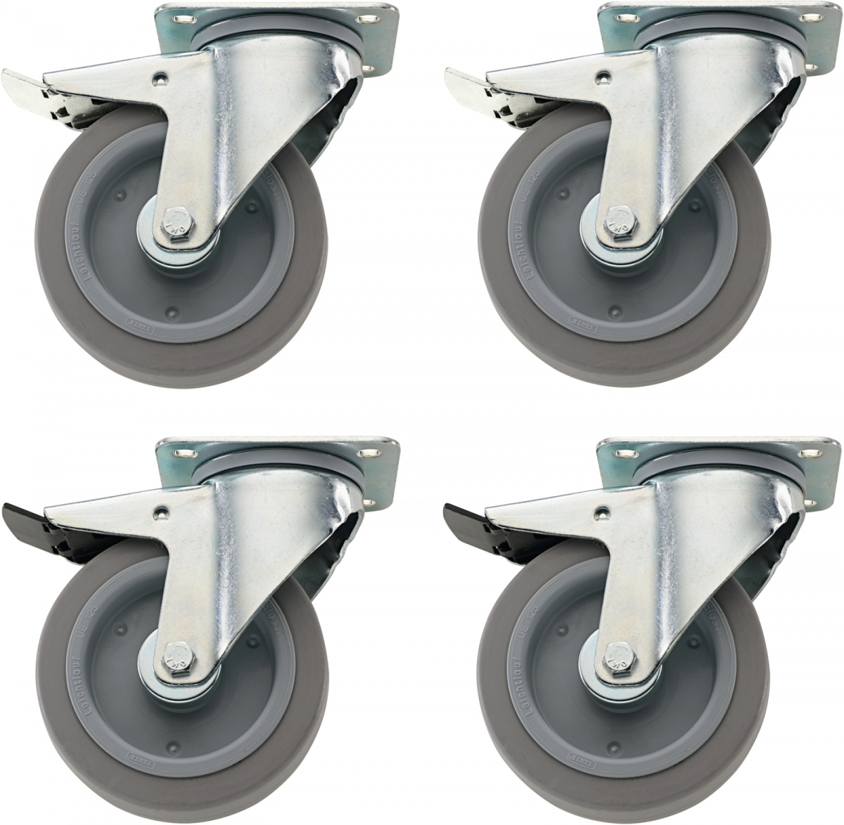 Sada koleček Skládá se z:po 2 nepohyblivých a pohyblivých kolečkách s kuličkovými loisky a snadným chodem o průměru 125 mm, z toho 2 se zajiovací brzdou