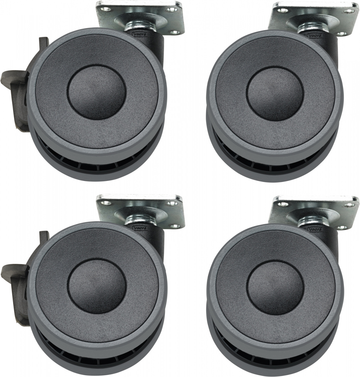 Sada koleček volitelné přísluenství, pro přepravu ve svislé poloze na 4 kolečkách, sestávající ze:4 otočných koleček, 2 z nich se zajiovací brzdou