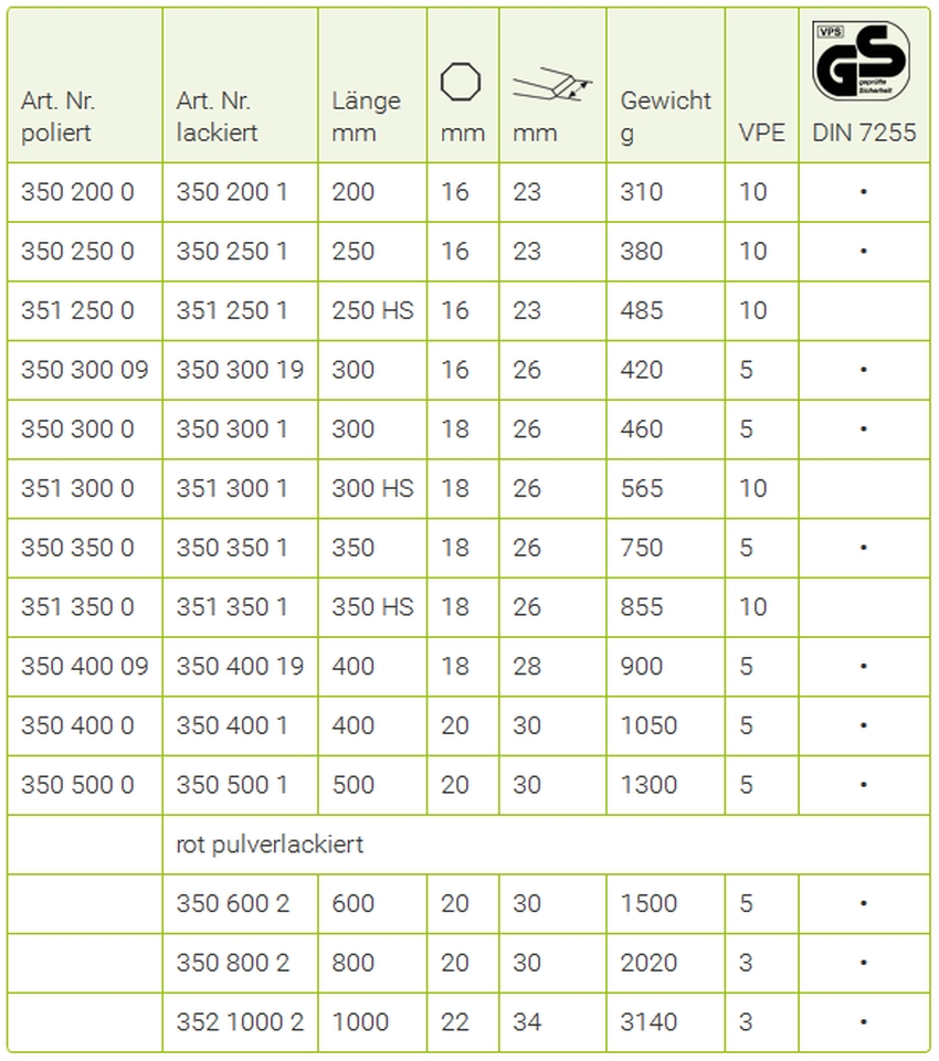 • (Art. No. 350 250 1) 1 x Sekáč plochý 250 mm, 16mm, osmihranný