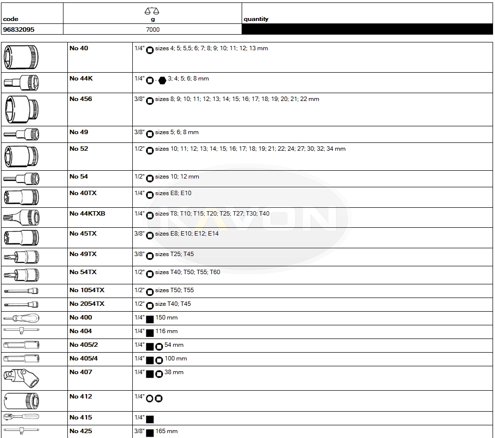 • 97 dílná sada hlavic 1/4"+3/8"+1/2" v TCS vložce TCS 40/456/52/78/19