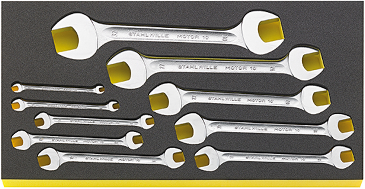 Vloky TCS pro vozík na nářadí č. 13217 pro zásuvky vozíku na nářadí č. 13217, 460 x 250 x 30 mm, 10-dílná -------------------------------------------------------------------------------------------------------------------------------- Č. 10 rozměr klíče 6 x 7; 8 x 9; 10 x 11; 12 x 13; 14 x 15; 16 x 17; 18 x 21; 20 x 22; 24 x 27; 30 x 32 mm --------------------------------------------------------------------------------------------------------------------------------