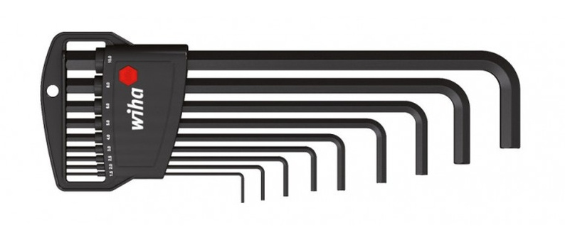 Běžné velikosti klíčů jsou přehledně uloženy v držáku. Jednoduché a rychlé ovládání v důsledku pevného dorazu pro zástrčný klíč.