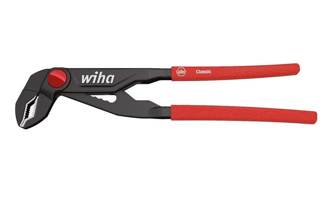 Průvlečný, jemně nastavitelný kloub, tím optimální přizpůsobení se uchopovanému předmětu. Rychlé a jednoduché nastavení a aretace tlačítkem. Dlouhá životnost díky přídavnému indukčnímu kalení čelistí rukojeti.