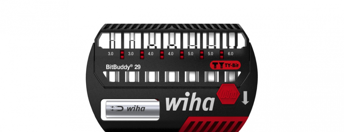 Žádná ruka není volná a už máte dost náročného hledání správného nástavce? Wiha BitBuddy® umožňuje přímé zachycení nástavců ve stroji i jednoduché zpětné zavedení do držáku. Držák bitů obsažený v sadě se silným magnetem podporuje inovativní manipulaci Buddy jen jednou rukou. Díky novému uspořádání nástavců v držáku i velikosti profilu vyrytého laserem na zadním čele nástavce bude výběr správné velikosti při vyjmutí nástavce velmi snadný. Obsažený nástavec TY je jako multitalent vhodný pro všechny druhy šroubů, jak pro šrouby ve tvaru T, tak i pro šrouby ve tvaru Y, a tím představuje ideální nástroj pro šroubení do všech materiálů. Díky patentované, prodloužené torzní zóně je nástavec také vhodný pro šroubováky Impact a nárazové utahováky a zaručuje 120x delší životnost ve srovnání se standardními nástavci Wiha. Navíc lze barevné nástavce rychle a jednoduše najít a díky barevnému plášti je dobře najdete i ve tmě za pomoci UV světla.