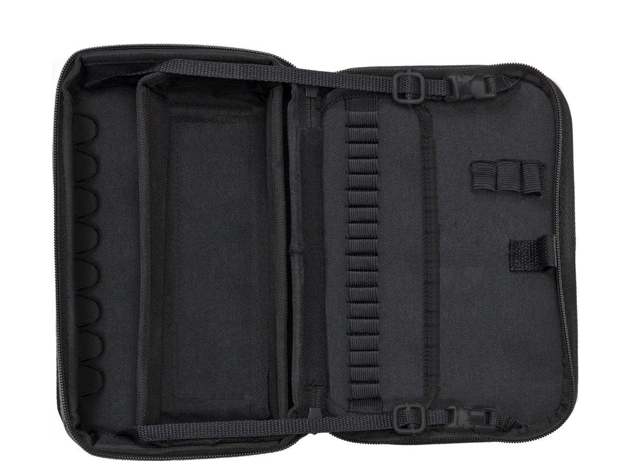 Především elektrikáři, kteří jezdí za zákazníky, musí nosit veškeré nářadí s sebou. Funkční brašna Wiha není jen odolná a kompaktní, ale umožňuje také více způsobů použití. V rozloženém stavu ji lze postavit na pracovní stůl jako stojan na nářadí, který usnadňuje vyjímání nástrojů. Klopa pro zavěšení na zeď a vyjímatelné dno představují další přidanou hodnotu. V brašně je místo pro 18 nástavců slimBits, osm vložek nástrčných klíčů, pět rukojetí řady ElectricVario Family a další příslušenství. Za vložkou pro nástavce slimBits se dále nachází prostor pro návody k použití nebo certifikáty s utahovacími momenty.