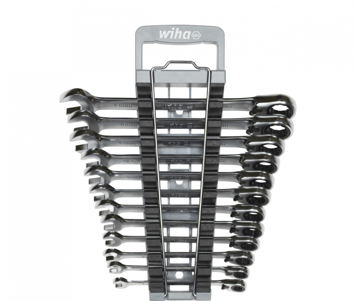 Wiha Sada otevřených klíčů s očkovou ráčnou 13díl., přepínací, vč. držáku (44661)