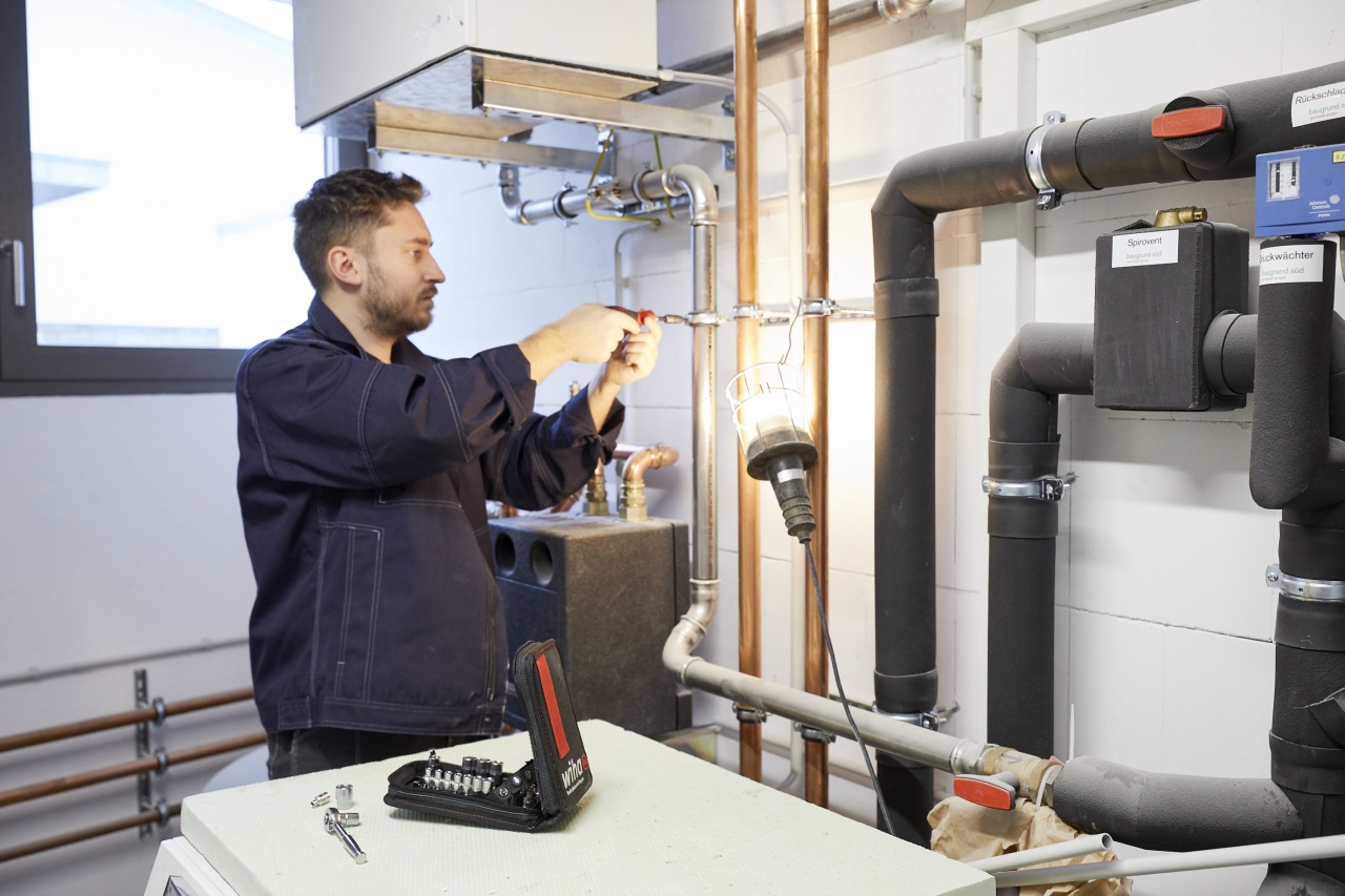 Nemít po ruce vhodné nářadí, když ho právě potřebujete, má při práci v terénu různé nevýhody – především pak zbytečné plýtvání časem. Se 40dílnou sadou nástrčných klíčů a nástavců 1/4" vám díky praktické tašce na opasek stačí ke šroubování jediný snadný hmat. Sada nejběžnějších 1/4" šestihranných vložek nástrčných klíčů ve velikostech 4–14 mm s různými bity, držákem nástavců, klíčem s ráčnou, dvěma prodlužovacími nástavci, kardanovým kloubem a adaptérem na nástrčné klíče 1/4" je skvělý doplněk výbavy každého uživatele provádějícího instalace a montáže. Ergonomicky tvarovaný šroubovák SoftFinish® s magnetickým držákem nástavců je navíc zárukou šroubování zvlášť šetrného k rukám. Díky adaptéru na 1/4" nástrčné klíče lze se šroubovákem SoftFinish® používat nejen přiložené nástavce, ale také vložky nástrčných klíčů. To uživateli výrazně rozšiřuje pole působnosti. Přiložený klíč s ráčnou v kombinaci se sadou vybraných nástrčných klíčů dává uživateli při každém pracovním zásahu potřebnou flexibilitu. Při práci s klíčem s ráčnou má navíc uživatel díky jemnému ozubení se 72 zuby zajištěn malý návratový úhel. Pravostranný/levostranný chod lze variabilně nastavovat pomocí integrované přepínací páčky. V kombinaci s přiloženými prodlužovacími nástavci se bez problémů dostanete i k hluboko uloženým maticím a šroubům. Nástrčné klíče a prodlužovací nástavce se aretují mechanicky. Výměna se provádí stisknutím uvolňovacího knoflíku. Vložky nástrčných klíčů vyrobené z jakostní chromvanadové oceli se pyšní dlouhou životností a velkou robustností, za které vděčí v neposlední řadě snadno čistitelnému povrchu odolnému proti korozi. Praktickou tašku lze díky chytrému designu upevnit na opasek i ji používat ke každodennímu uložení sady. Neklouzavý povrch zajišťuje pevné uchopení i při znečištění olejem či ve vlhkém pracovním prostředí.