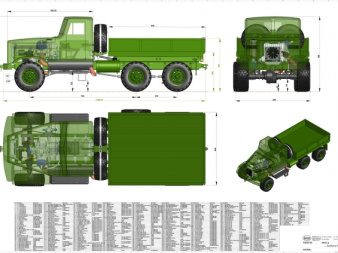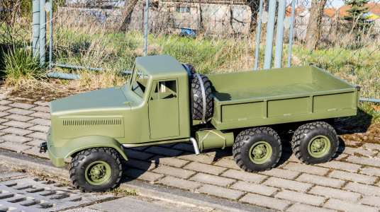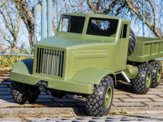 Je ruský nákladní automobil a byl vytvořen proto, aby s pomocí speciálního závěsu odtáhl vrtulník KA-52 na startovací pozici ... Model je postaven v měřítku 1 : 6. Bezdušové pneumatiky a ráfky vlastní konstrukce, uzávěrka diferenciálu na všech nápravách, třístupňová převodovka s kalenými ozubenými koly. Pohon střídavý elektromotor 6 kW, Lipo 2x6S 44 V, 5000 mAh, regulátor 80 A. Rozměry šířka 490 mm, délka 1330 mm, výška 496 mm.