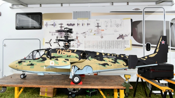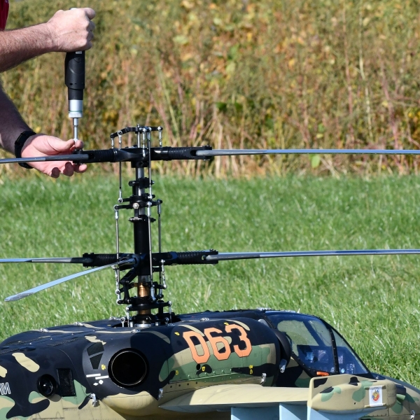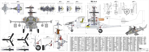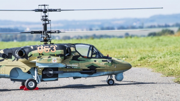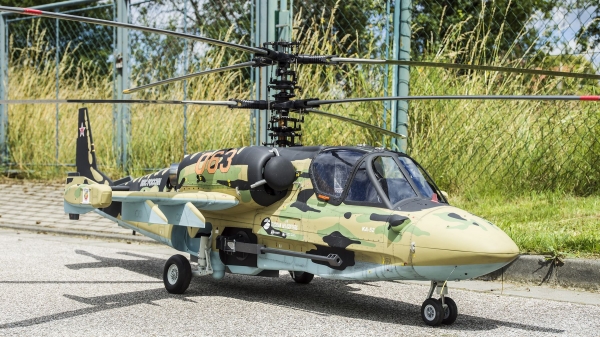 Это русский боевой вертолет, ставший образцом третьей собственной конструкции вертолета с соосными несущими винтами. Сама конструкция представляла техническую проблему из-за сложности соосного винта, а также привода с двумя турбинами, соединенными соединительной коробкой передач с наклонными закаленными и шлифованными зубьями в масляной ванне. В масляной ванне также работает раздаточная коробка лопастей несущих винтов ... Вертолет построен в масштабе 1 : 5,6. Длина составляет 2524 мм, ширина 1400 мм, высота 900 мм, вес 24,5 кг, два несущих винта Ø 2600 мм.